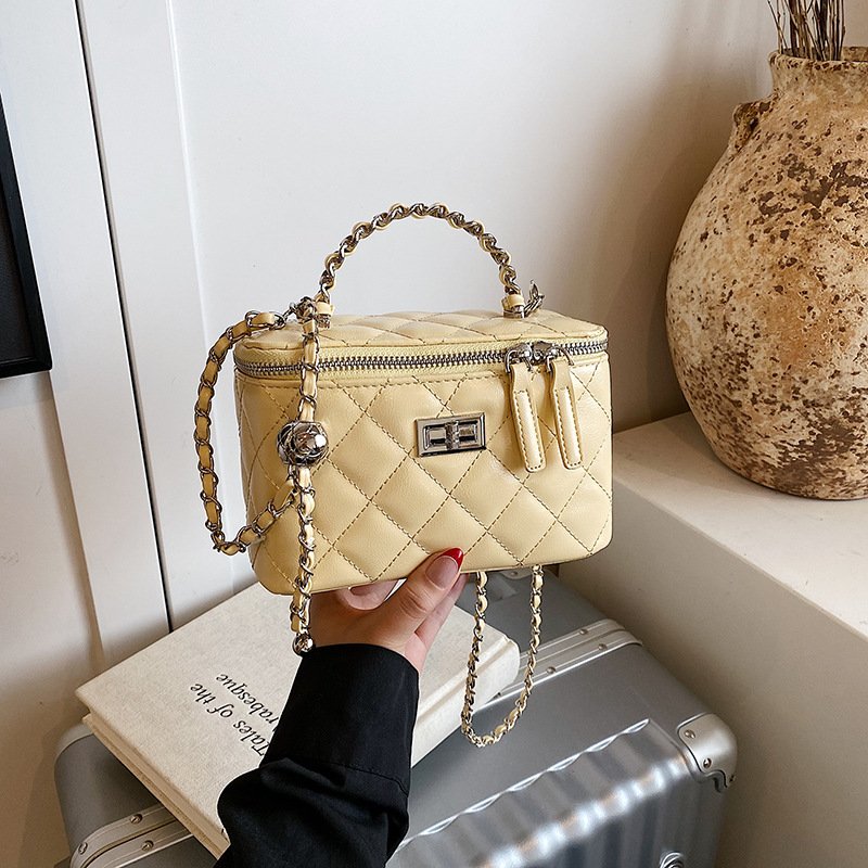 Material: Calfskin leather Style: Small square bag Size: Small Popular elements: Stitching, chain Opening method: Zipper Lining material: Calfskin leather Style: Urban minimalist Shape: Box-shaped Year and season of release: Spring 2025 Size: One size fits all, with charm Internal structure: Compartment zippered pocket Hardness: Medium